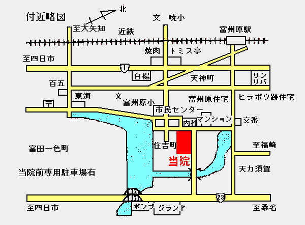 | 受付時間 | 午前8:30~12:00・午後2:30~6:30 毎週火木土は予約日 (休診)日曜、祭日、第3木曜午後 |